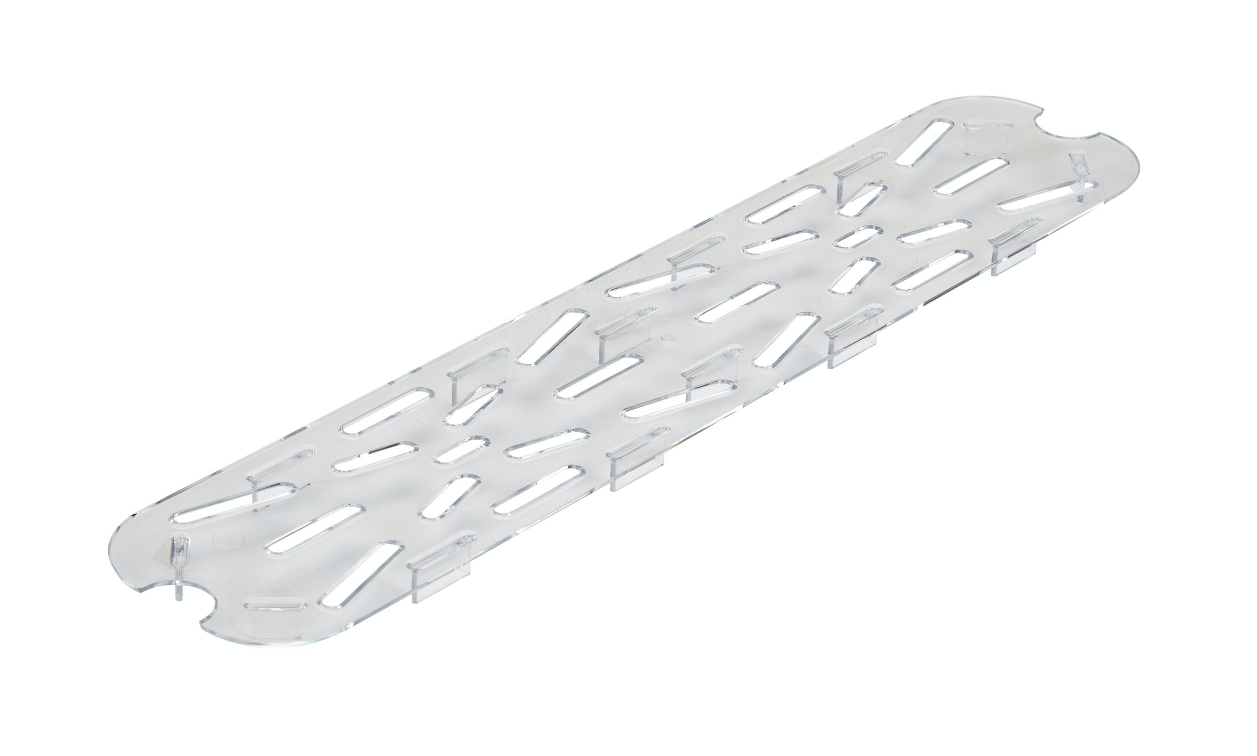 Store your freshly cleaned fruits and vegetables out of the residual water with this Cambro 20LPCWD135 Camwear clear 1/2 size long polycarbonate drain shelf!